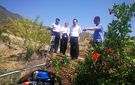调研组了解到,浦贝乡石花坪片区软籽石榴种植已经发展成为水、电、路等基础设施配套、标准化的石榴种植基地,并向周边延伸带动大户和农户种植软籽石榴面积达4000余亩,十街柑桔优化品种种植达1万多亩。调研组表示,易门石榴和柑桔种植基地的产业发展模式就是“绿水青山就是金山银山”的典型诠释,既能有效扩大农业产业发展规模,形成产业规模效益,又能帮助农户解决致富发展问题,带动一般农户规避盲目发展产业风险,既“绿了荒山”又“富了群众”,是非常值得学习借鉴的产业发展方式。